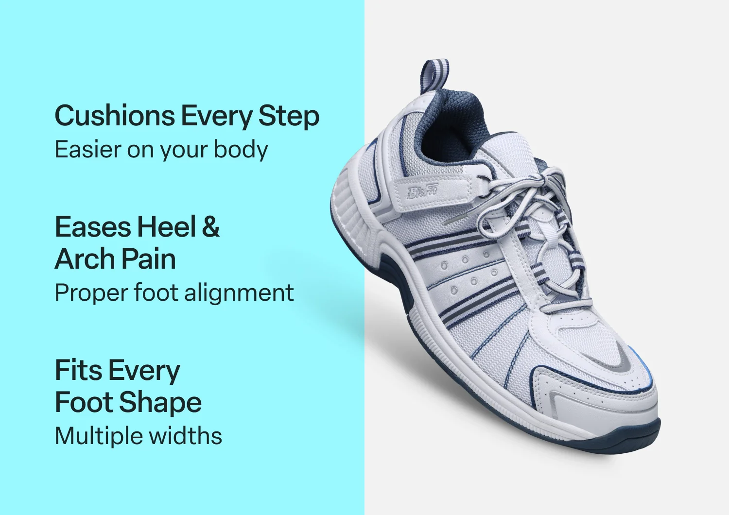 All roads lead to comfort in this breathable and non-binding microfiber and fabric sneaker. Our tie-less lacing system is just as cool & tie these once, then use the tabs on either side to open and close them. Brilliant! Enjoy every street, lane and path with the adjustable support of the Ortho-Cushion™ System. The mild rocker sole and padded interior make getting there pain-free.