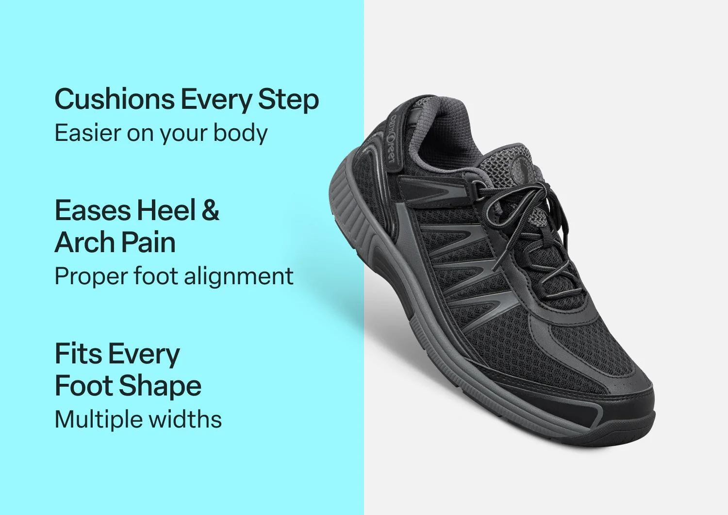 Tying your sport shoes shouldn't be a marathon. With our clever tie-less lacing system, getting into your sneakers only takes the pull of a discreet tab on either side of the shoe. Sprint's heel strap secures the perfect fit, even with braces. Whatever track your day is on, ensure every stride is low-impact and well supported with customizable Ortho-Cushionâ„¢ System comfort.